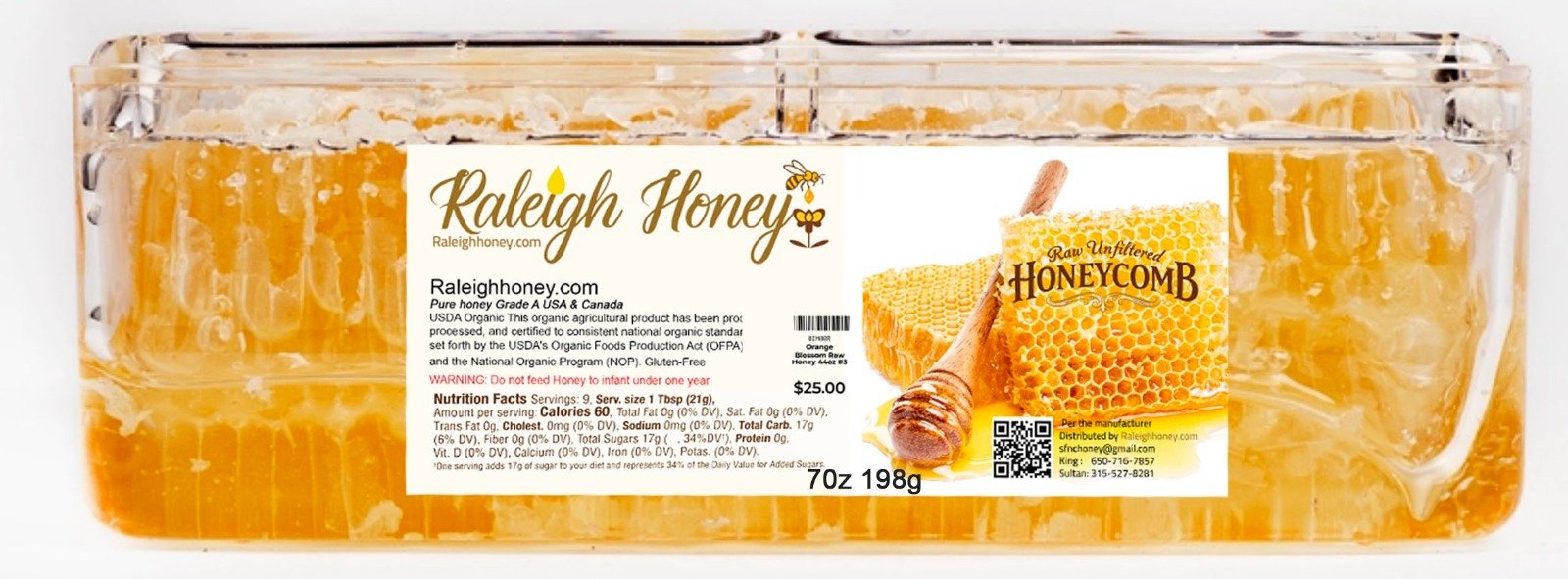 Raleigh Honey Honeycomb (7 oz.) – Pure, Raw, Gourmet Luxury
